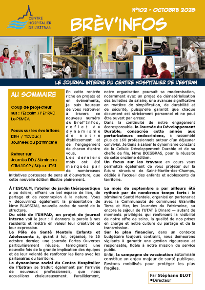 Un œil neuf sur l’actualité du Centre Hospitalier de l’estran, voici ce que vous propose « Brèv’infos », le journal interne de l’établissement.