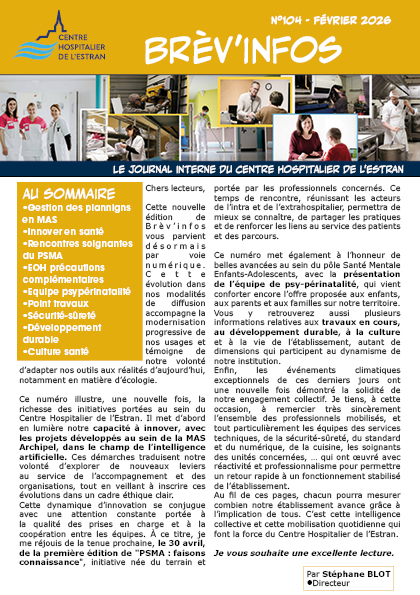 Un œil neuf sur l’actualité du Centre Hospitalier de l’estran, voici ce que vous propose « Brèv’infos », le journal interne de l’établissement.